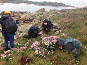 In the rain, Manx shearwaters were tucked away in their burrows during the day (sitting on their egg) and called back to a tape player of the Manx shearwater call, to let us know they were in their burrows! This is how Seabird Ecologist Dr. Vickie Heaney surveys the Manxies, and the volunteers were amazed to hear these incredible birds beneath the ground and learn all about the survey methodology. Volunteer Lydia Titterton said 'its just incredible to hear them, I did not know anything about them last week and now I have learnt so much'.